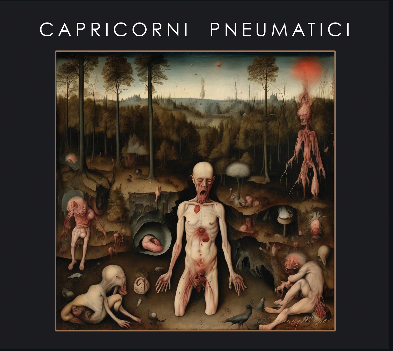 “Variants” is a new chapter of Capricorni Pneumatici an esoteric post industrial project that started in Italy during the nineties. First of all you will be caught by the nice cover recalling Flemish painter Hyeronimus Bosh. You may see it as an introduction to the dark disquieting spaces crossed by CP during the 7 tracks of this work. The sound generated by live electronics, percussions and treated guitars subtly flows from one track to the other trying to overcome the opacity of the world of shadows with intense and incisive layers that bring the listener to concentrate his attention on this minimalist experience leaving out the external world. This opus was created in hot summer of a hot city like Milano but has the winter climate of Northern Europe in it.